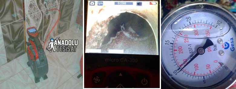 Su tesisatının 3 bölümden oluşması ile birlikte su kaçağının hangi bölümden kaynaklandığını bulmak, bir tesisat firmasının ilk işi olmalıdır. Su tesisatına bağladığımız manometre ile teste tabi tutulan su tesisatlarında oluşan kaçakları kısa bir süre içerisinde makine yardımıyla tespit ediyoruz. Örneğin, pis su borusunun çatlaması ile oluşan kaçaklarının yerini ise termal kamera ve akustik cihazlarımız ile bulmaktayız. Pis su tesisatının geçtiği noktaları görüntülü cihazlar sayesinde tek tek kontrol ediyoruz, akustik cihazımızın verdiği ses dalgalarını analiz ediyoruz. Analiz sonucunda ise, gider borularında oluşan arızaları kamera görüntüleme sistemi sayesinde size de göstererek, pimaşda bulunan çatlak, eğimsizlik veya conta problemlerini görüyoruz. Bu cihazlarımızın sayesinde size kaçağın başladığı yeri cihazda gösterip, sorunun buradan kaynaklandığını ve tamiratın ortalama ne kadar tutacağını söyleyebiliyoruz.
