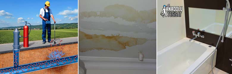 Su kaçağın tespiti ve onarımı, kameralı cihazlarla su kaçağını bulma. Su sızıntısı tespiti önemli ve profesyonel yapılması gereken bir iştir. Evinizin banyosunda meydana gelen su kaçağın önlemi alınmadığı süre boyunca alt komşunuza su sızmaya başlamaktadır. Anadolu Tesisat olarak evinize gelen profesyonel ekiplerimizce banyonuzda meydana gelmiş olan su kaçağını bulmak için önce kameralı cihazlarla noktasal olarak tespiti yapılmaktadır. Tespiti yapılmış olan su kaçağı onarımı için ise fazla kırma dökme yapılmadan ( fayans altı ise 2-3 adet fayans, duvar ise duvarı fazla kırmadan ) onarımı yapılmaktadır.