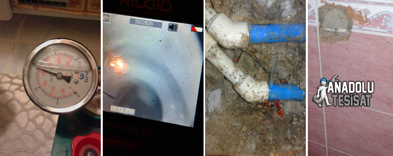 Temiz su tesisatındaki kaçakları bulmak için manometre cihazından faydalanıyoruz. Su sızıntısını tespit eden kameralı tesisatçı ustamız, su sızdıran yeri ve kaynağını tespit etmek için tesisat borularının üzerinde önce akustik dinleme cihazı ile sonra da termal kameralar ile su kaçağı izini sürer. Akustik cihazdan gelecek ses dalgalanmalarını deneyimlerine göre yorumlayan tesisatçı ekibimiz, su sızıntısını yerini bulma da her zaman başarılı olmuştur. Su sızıntısı tespiti yapılan noktadan bir ya da iki karo kırılarak hemen tesisat onarımını da yapabiliyoruz. Anadolu Tesisat olarak, tüm su tesisatı işlerimizde olduğu gibi su kaçakları tamiratında da fayansçı ustamızı ekibimizde muhafaza ediyoruz. Bu nedenle, tespit sonrası tamirat işi bizim için hiç problem değil. Her türlü takım malzemeyi yanında barındıran uzman personelimiz ufak bir boru kaynağı için usta arama çilesinden sizleri kurtarmaktadır. Onarımın yapımından sonrada başka herhangi bir kaçağın olasılığı üzerinde duran firmamız, tekrar tesisatı test ederek varsa kaçakları onarır, yoksa ise işlemi başarıyla noktalar.