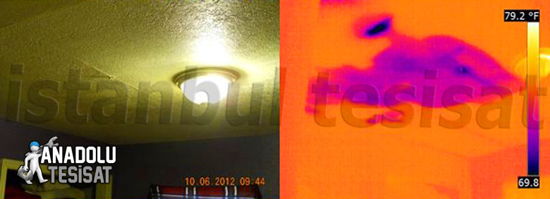 Nereden geldiği belli olmayan su sızıntılarıyla uğraşmak, yerini bulup tamir etmek çok zor bir iştir. Bazen bu durum öyle karmaşık olur ki her tarafı kazıp, kırmanıza rağmen sonuç elde edilemez. Sızan suları bulmak için geliştirilen cihazlar birkaç yıldır kullanılmaktadır. Son 2 yıldır gündemde olan termal kamera ile su kaçağı tespit hizmeti, elle tutulan gözle görülen bir iş olduğu için insanların daha çok hoşuna gidiyor. Halbuki su kaçağı en iyi akustik dinleme yöntemiyle bulunur. Zaten termal kamerayla su kaçağı bulma genellikle merkezi sistem ısıtmalarda ve kalorifer tesisatlarında daha etkilidir. Termal kamera sadece ısıya duyarlıdır ve su kaçağını da ısınmış su olmadan bulamaz. Bunun yanı sıra yerden ısıtma sistemlerinde her yer ısındığı için, su kaçağı pek anlaşılamayabilir. Bunun için zemini soğutmak ve hangi hatta kaçak varsa onu tespit edip, sadece o hattı çalıştırmak gerekebilir. Bu sebeplerden ötürü termal kamera ile yapılan işlem uzun sürer ve çok zahmetlidir. Termal kameradan bakınca zemindeki sıcak alan aşağıda ki gibi görünür.